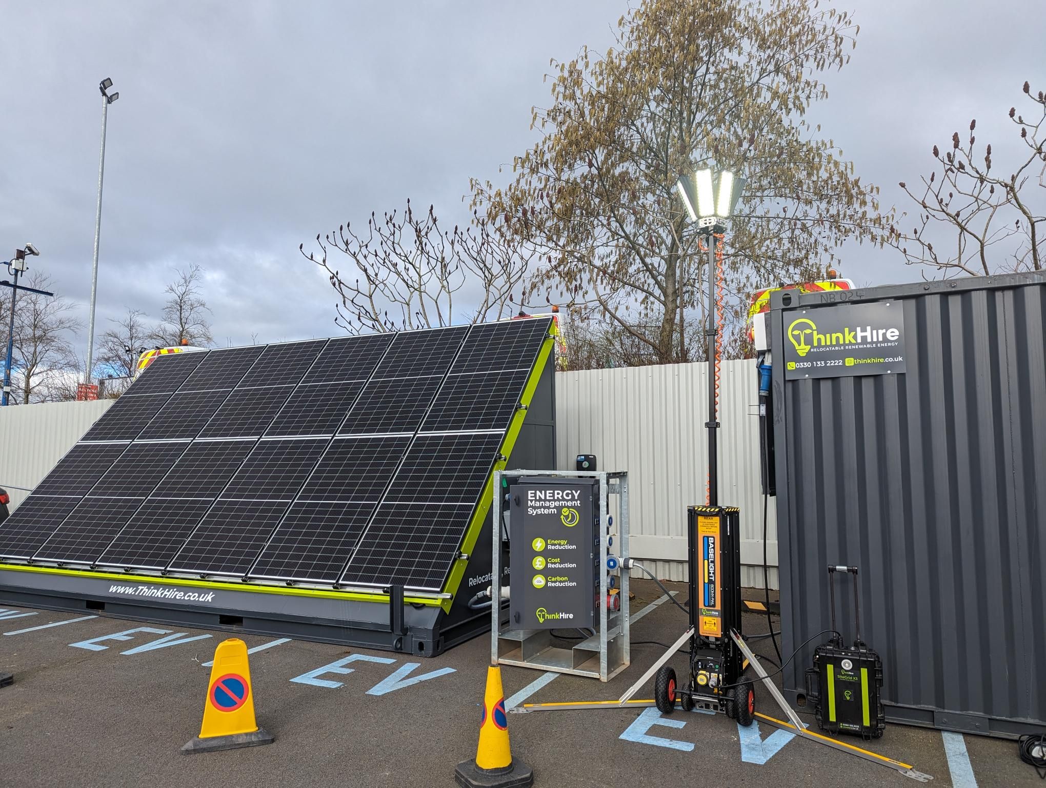 Flexible, scalable energy – all Think Hire hybrid solar generator systems are fully flexible and scalable, so you’ll only pay for what you need at each stage of your project, without ever compromising on capacity. We can tailor your portable solar powered generator system to cover everything from the high demand of cranes and construction machinery, to the lower demands of final-fix works.