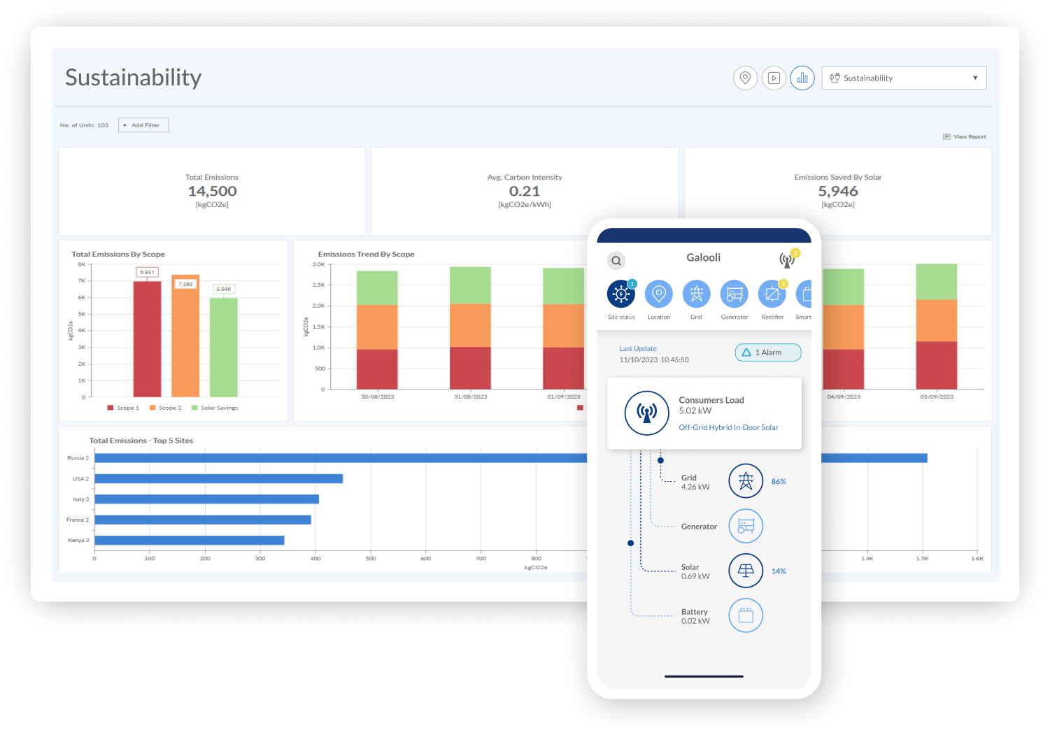 Think Hire already provides a full suite of renewable energy technology to help you cut fossil fuel use and reduce greenhouse gas emissions. From solar site generator hire to solar powered construction lighting, we can help you cut the carbon footprint of your site significantly. Now, thanks to the data management system powered by Galooli, you can fine tune the deployment and operation of this equipment to maximise efficiency and minimise the environmental impact of your work.
