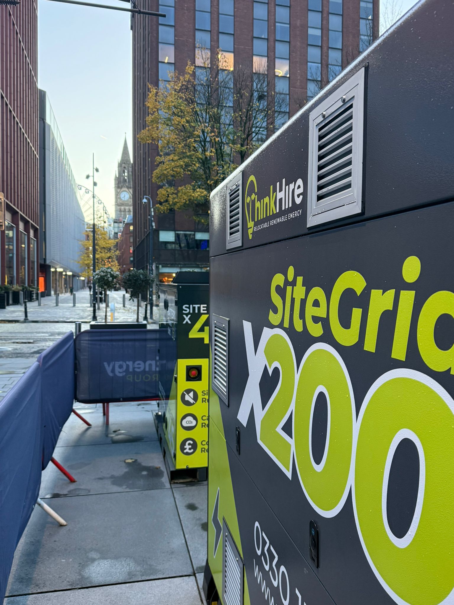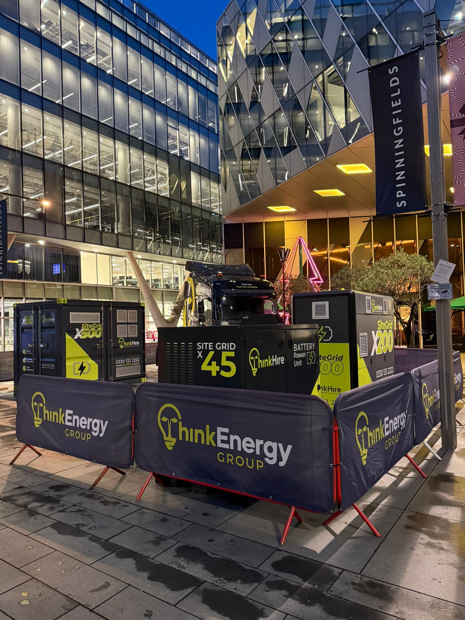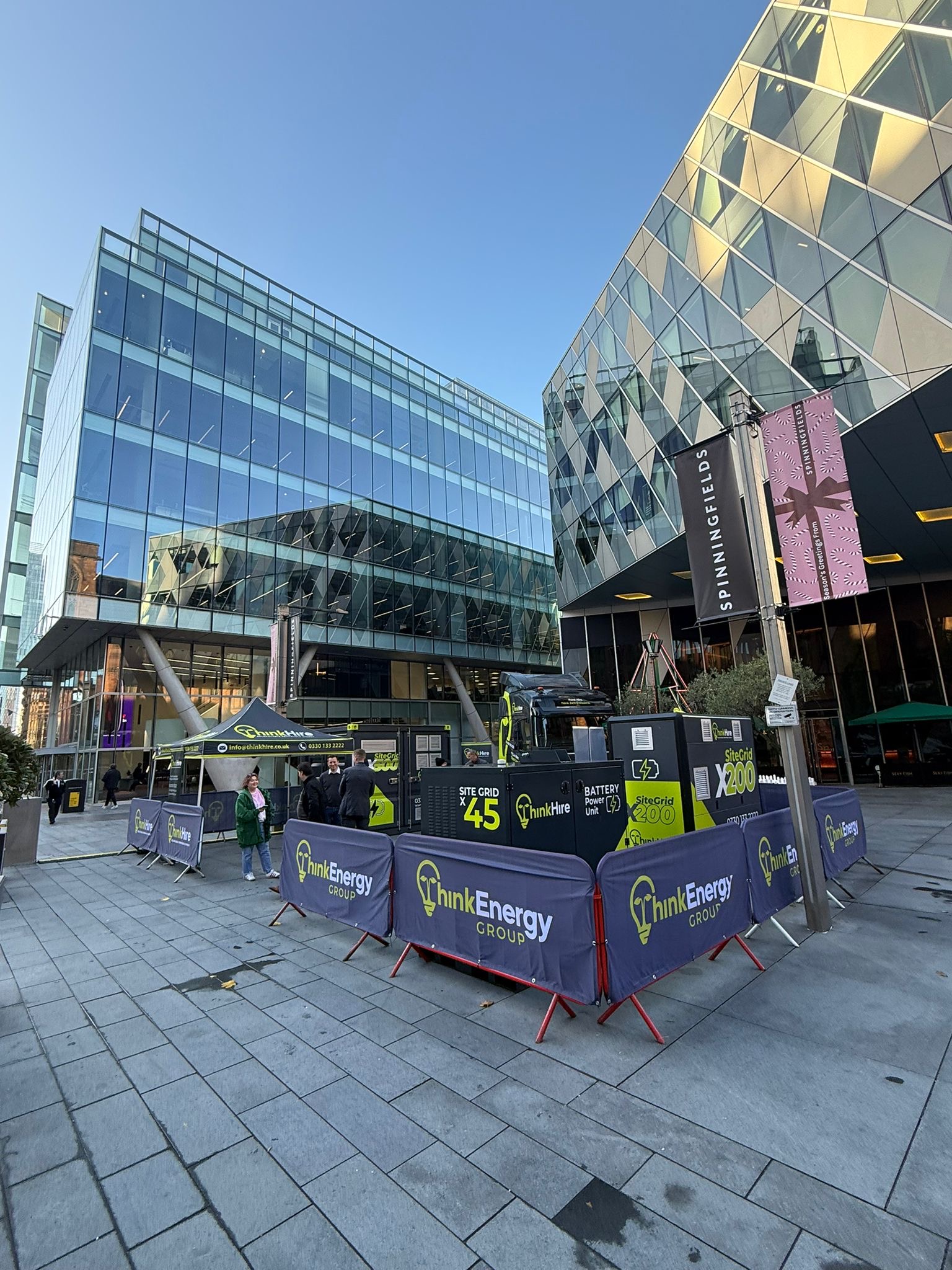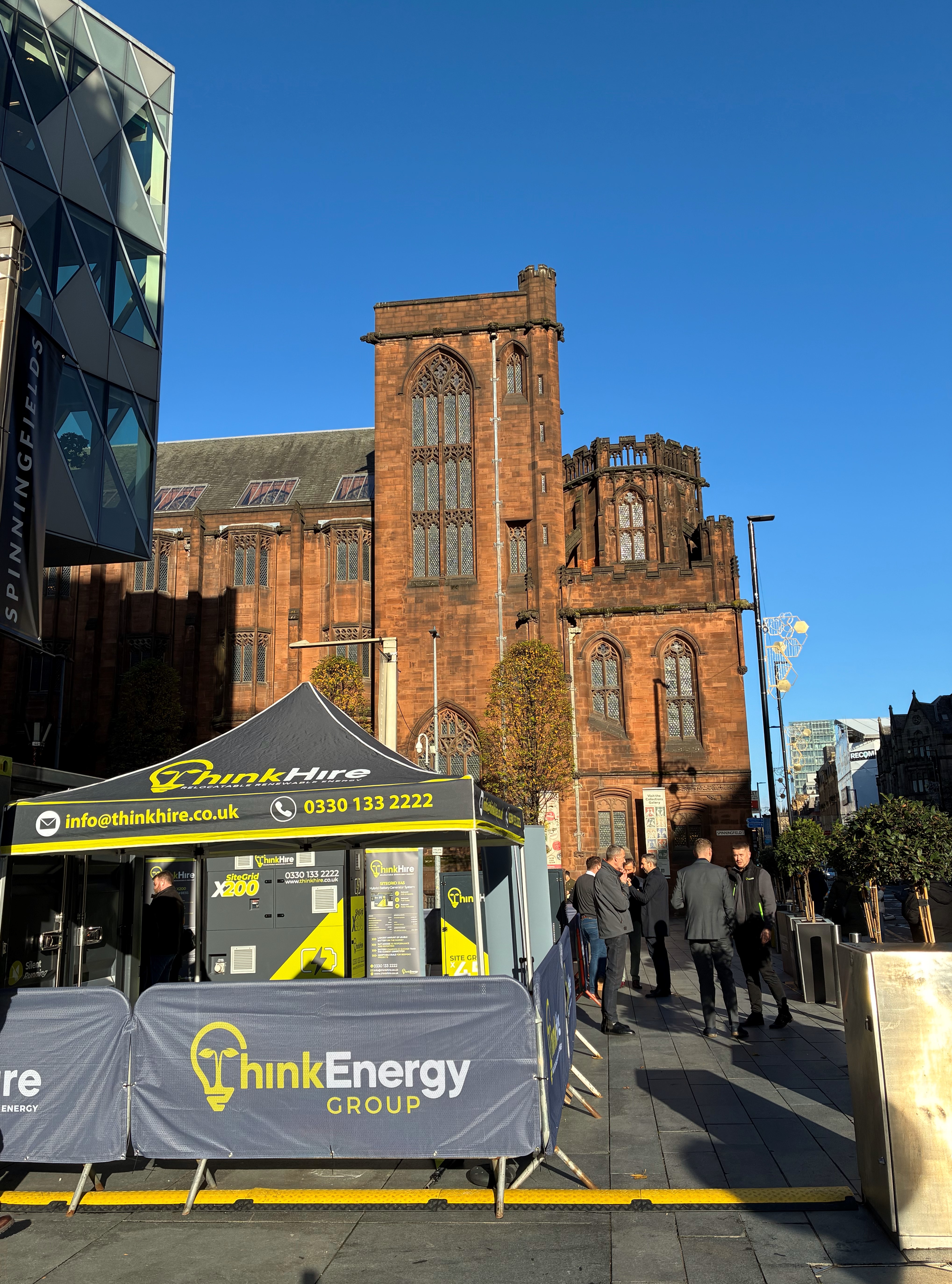 Think Hire, a division of Think Energy Group, has transformed the heart of Manchester with a live pop-up installation at Spinningfields Square, right beside the iconic John Rylands Library.