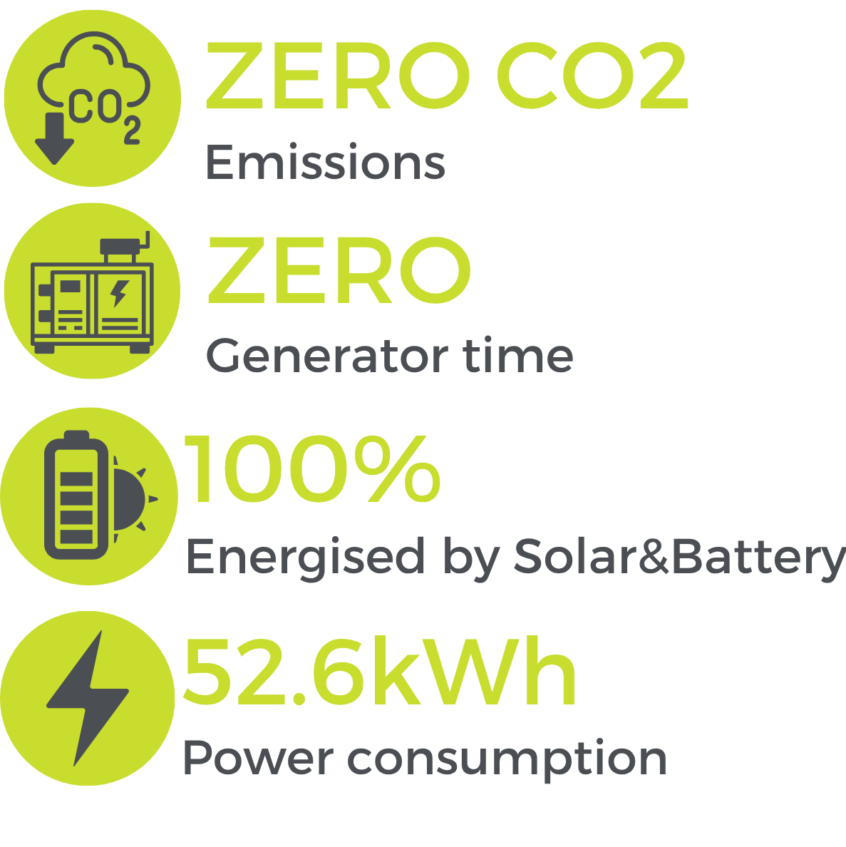 100% Renewable, Zero Generator Use.