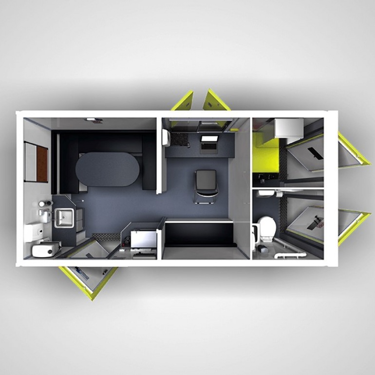 Designed to be compact, lightweight and easy to transport, our eco 7 person mobile welfare unit is suitable for almost any environment. The unit provides comfortable seating for up to 7 people between both a canteen and separate office. The unit also includes dedicated under seat storage, shelving in the office as well as individual personal storage compartments.